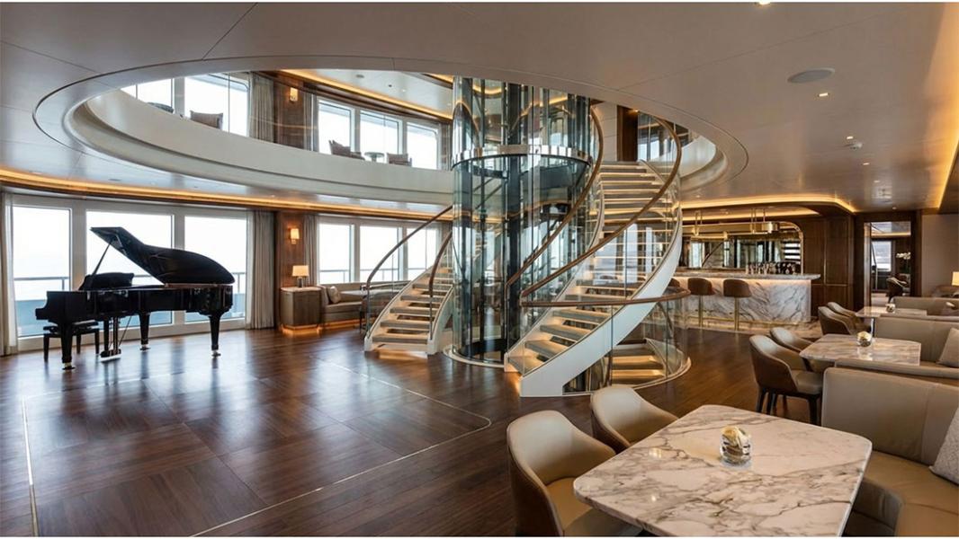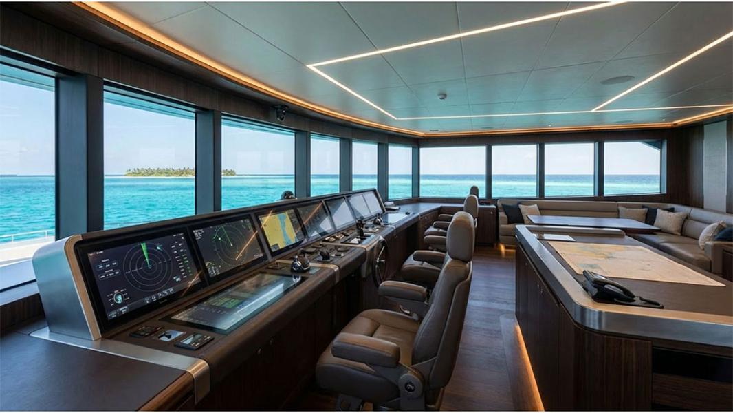 Spanning seven decks, the vessel can accommodate up to 100 guests in addition to the owner, each provided with generous spaces and a diverse array of amenities. The yacht also supports a crew complement of up to 40, housed in high-quality quarters featuring en-suite cabins and a spacious crew mess for comfort during extended voyages.