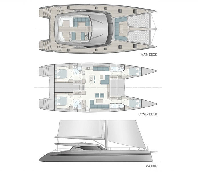 Interior design and project management are undertaken by Brythonic & Elibra Yachts in collaboration with KND Naval Design.