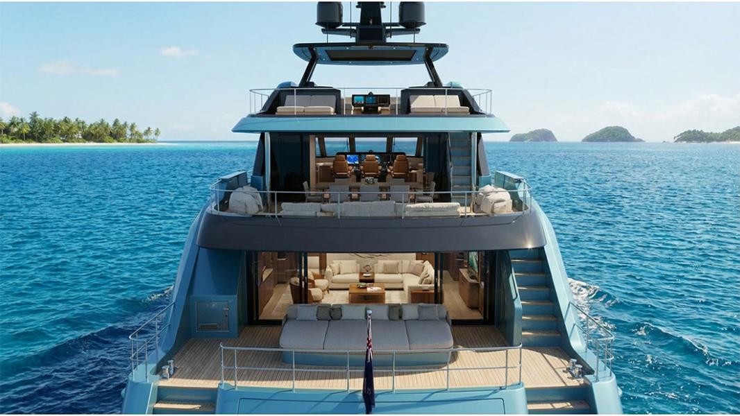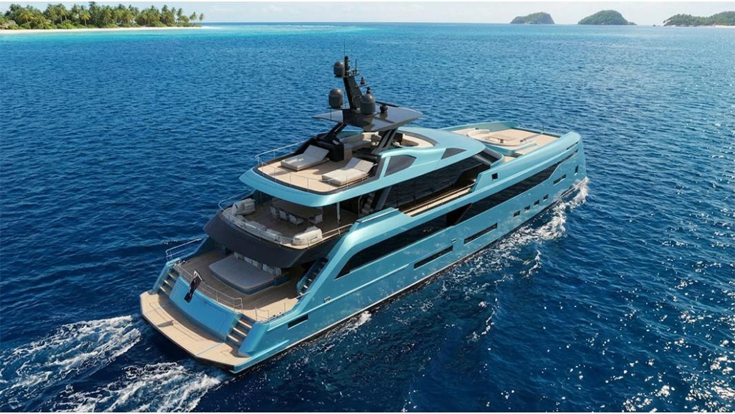 Constructed in high-grade aluminium for robustness and agility, the yacht features a composite superstructure for optimal weight savings and strength. With an 8.70-metre beam, she offers impressive stability and expansive interior volume. The integration of stainless steel foils enhances comfort at sea, increases speed, and improves fuel economy, delivering a smoother and more efficient ride.